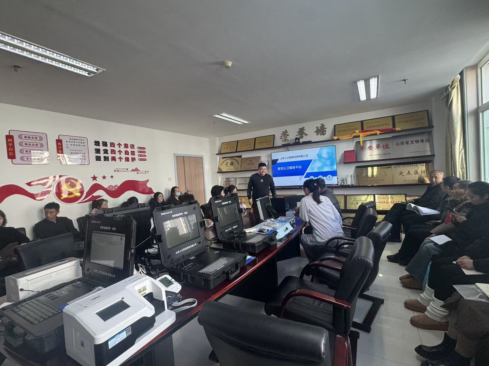 2026年1月,山西省臨汾市蒲縣醫(yī)療集團(tuán)組織各衛(wèi)生院院長及公衛(wèi)相關(guān)工作人員,前往參觀山東上正信息科技有限公司的公衛(wèi)平臺及體檢一體機(jī)。現(xiàn)場操作演示引發(fā)了熱烈反響。
